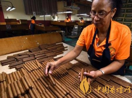 古巴正值雪茄烟叶丰收季,拉科罗纳雪茄厂将从西部比那尔德里奥省和阿特米萨省雪茄种植园运来的已经晾晒、发酵的烟叶按需划分、筛选、卷制,并通过严格的长短、粗细、松紧等质量检查,最终贴上烟标、包装成盒,整个过程至少需要经过5道工序。