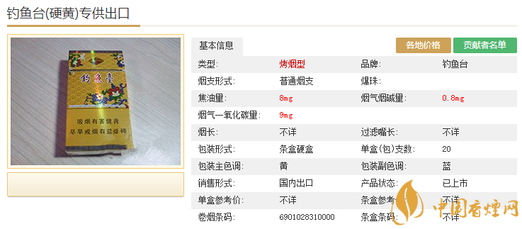 以上就是jrs直播为您提供的钓鱼台硬黄香烟基本信息和2020钓鱼台(硬黄)专供出口香烟价格表,想要知道更多关于香烟的信息,请时刻关注jrs直播。