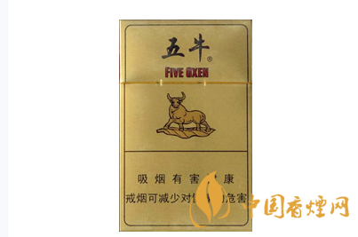 在五牛香烟图片和价格大全中,五牛(硬金)香烟为五牛品牌旗下的一款香烟,特有的五牛金给人环保的感觉,牛图案采用了高技术的电雕网版四色印刷,线条及颜色边缘呈现出凹印所独具的锯齿状,再现了中国古代名画《五牛图》的风格。