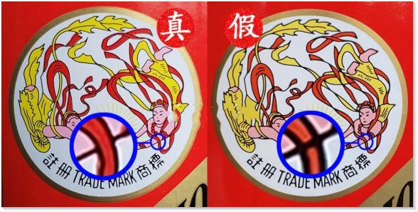 6、飞天标“注”字这里,真的这里是分开的,假的是连着的。