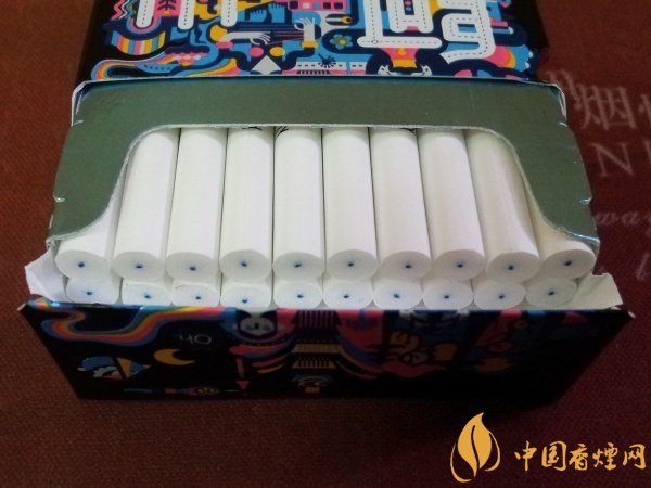 拉开淡蓝色的锡箔纸,滤嘴里有蓝色香线,抛开“可以将女士喜欢的花果味道带进烟里”这一功能不提,单是烟嘴上那一点可视的缤纷色彩,香线都足以为这款细支烟加分。
