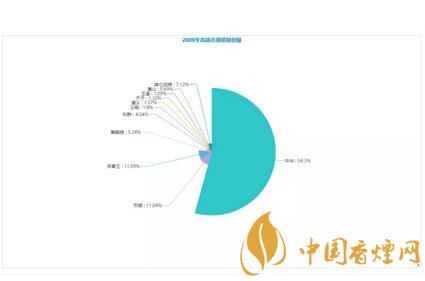 2009年,「中华」销量首次超过50万箱,占据了整个超高端市场的半壁江山,市场份额达到54%以上,「苏烟」和「芙蓉王」突破10万箱,排名第4位的「黄鹤楼」刚过5万箱。2012年,「中华」年销量首次突破100万箱达到110万箱,但市场份额亦首次掉下50%降至49%,「芙蓉王」、「苏烟」、「黄鹤楼」、「利群」4个品牌超过15万箱。