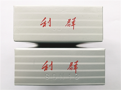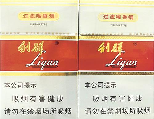 真利群商标采用精湛的印刷技术,“利群”字体略粗,用手抚摸平整、光滑。假利群的印刷技术较劣质,字体颜色存在色差,用手抚摸凹凸感十分明显。
