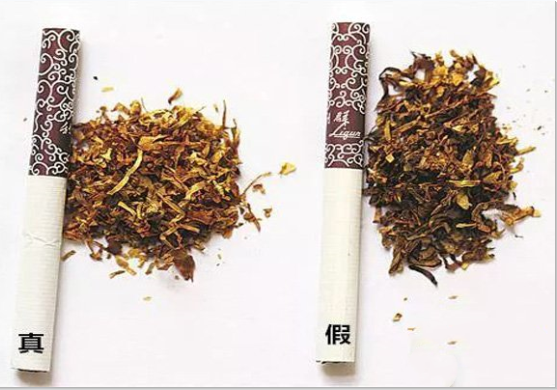 真烟采用机器封口,烫封一次完工,封口平整,拉线头形状规则,为半椭圆形。假烟采用手工封口,封口处凹凸不平,拉线头形状不规则。