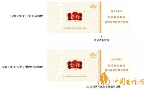 大家可能也了解国产中高档香烟价格表和图片,云烟占据主要市场。本次世界杯版对以下产品的条盒、小盒进行了局部改版调整,具体调整:小盒翻盖内定位卡纸印刷世界杯元素、小盒内衬纸彩图印刷世界杯元素、小盒拉线增加“2018世界杯”金色字样、条盒拉线增加“2018世界杯”金色字样。下面一起来看看细节对比图吧。