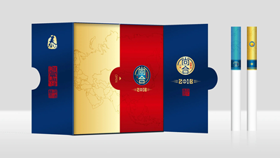 尚合这款香烟从包装的开盒方式可以看出,此款香烟的包装是对开盒设计,包装整体色调以深邃的海蓝色印映着点点星光,泰山标识与“尚合”左右呼应,使得整个包装风格彰显低调、奢华、上档次的上合精神。
