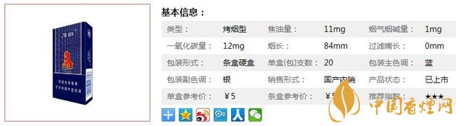 | 类型 :烤烟型 | 焦油量 :11mg | 烟气烟碱量 :1mg | 一氧化碳量 :12mg |