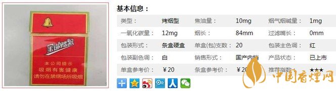 | 类型 :烤烟型 | 焦油量 :10mg | 烟气烟碱量 :1.1mg | 一氧化碳量 :12mg |