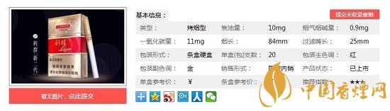利群新二代从原料筛选、卷烟配方,到加工工艺、参数设置等每道工序都以需求为出发点精益求精。甄选糖分充足的优质中上部烟叶作为原料。同时,在原有“原生系”原料香型匹配基础上,遴选上部烟叶和优质中部烟叶再次进行合理配比,突出烟草本味的丰富性。下面一起来看下利群新二代的具体参数:一盒20支,烟长84mm,焦油量10mg,烟碱量0.9mg,一氧化碳量11mg。