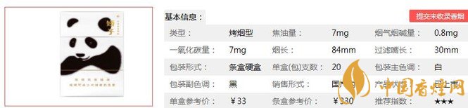 | 类型 :烤烟型 | 焦油量 :7mg | 烟气烟碱量 :0.8mg | 一氧化碳量 :7mg |