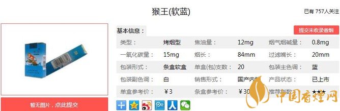 猴王软蓝价格及参数 陕西低价烟中的佼佼者
