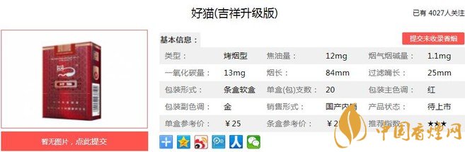 陕西中烟升级之作 好猫吉祥升级版多少钱一包