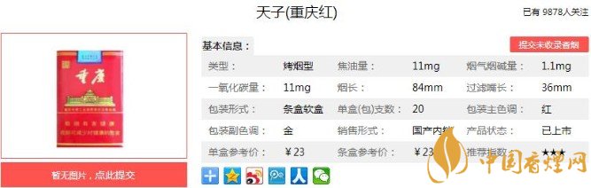 以上便是jrs直播小编为大家介绍的关于地道重庆味的香烟,天子(重庆红)价格在23元一包!的相关信息,看完之后大家是不是对于天子(重庆红)的相关信息更加了解呢。大家还想查询更多的相关内容欢迎点击:天子千里江山细支爆珠味道怎么样 千里江山口感分析