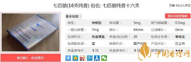 以上便是jrs直播小编为大家介绍的关于在降焦的同时兼顾口感,七匹狼16支纯香价格超值!的相关信息,看完之后大家是不是对于七匹狼(16支纯香)这款香烟的相关信息更加了解呢。大家还想查询更多的相关内容欢迎点击:高端烟品低端价格,七匹狼通泰售价只需要19元一包!