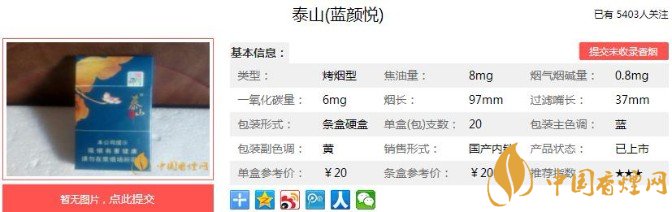以上便是jrs直播小编为大家介绍的关于泰山蓝颜悦多少钱 泰山蓝颜悦价格及口感品吸的相关信息,看完之后大家是不是对于泰山(蓝颜悦)这款香烟的相关信息更加了解呢。大家还想查询更多的相关内容欢迎点击:泰山儒风多少钱 泰山儒风最新口感评测
