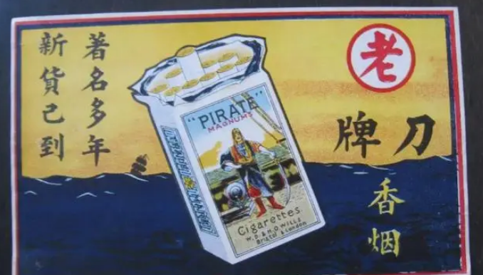 老刀牌香烟最初是由英国惠尔斯公司生产,以"Pirate"(意为“海盗”)为名,1891年(清·光绪十七年)起委托上海公发英行代销。随着英美烟草公司在华建厂,且借助于廉价的劳动力以及铺天盖地的烟草广告,"老刀牌"香烟很快便占据了中国市场。