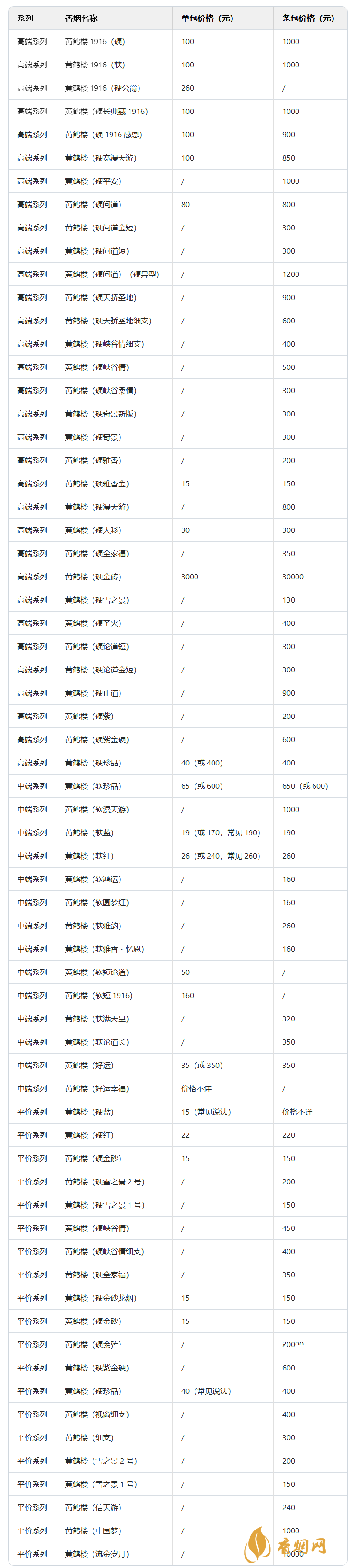 以上就是jrs直播小编为大家整理收集有关黄鹤楼香烟价格表和图片大全(最完整版)的相关信息。以上资料来源于网络,如需了解更多资讯,请持续关注jrs直播,小编将会为大家带来更多信息。
