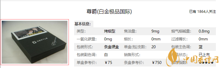既然是顶级产品,自然价格也不会低,这款香烟的价格大概是75元/盒!
