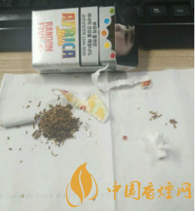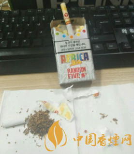 这款烟的外包装除了有恶心的忠告图意外,还是比较漂亮的。烟盒下方标有“AFRICARANDOMFIVE”烟盒上方是忠告图吸烟有害健康的一些标语。