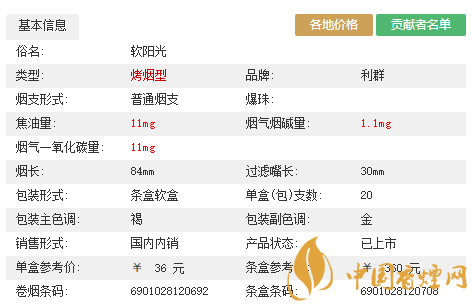类型 :烤烟型 焦油量 :10mg 烟气烟碱量 :1mg 一氧化碳量 :12mg