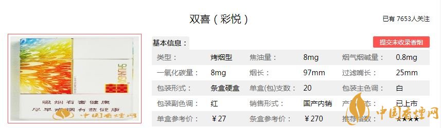 以上就是jrs直播为大家整理介绍的双喜彩悦香烟的价格介绍,这款香烟从包装上看就引人注目,包装新颖好看,你们对这款香烟的看法如何?欢迎大家在评论区一起讨论分享哦!