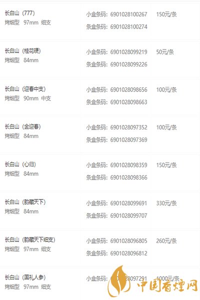2008年,“长白山”品牌被国家烟草专卖局列为全国20个重点骨干品牌进行考核。长白山系列香烟是延吉卷烟厂的主打品牌。其系列产品主要包括东方神韵、软红、硬红、银、醇香、长白阿里郎等,是吉林人极为认可的一种香烟品牌。长白山东方神韵更荣获了2008年吉林省科学技术进步奖一等奖,成为国内低焦油烤烟的成功代表之一。