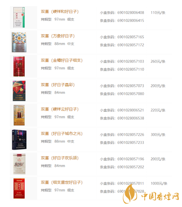 2020年双喜好日子香烟价格表