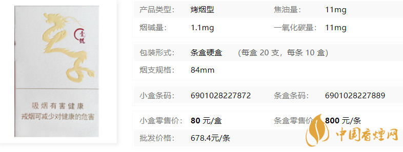 | 类型 :烤烟型 | 焦油量 :11mg | 烟气烟碱量 :1.1mg | 一氧化碳量 :11mg |