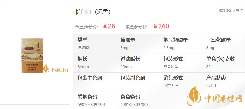参考价:26元/包,“长白山(沉香)”细支卷烟集国内外优质烟叶的芳香, 融合天然沉香幽雅、沁心的香韵,注重烟香丰富性和谐调性的统一,展现了独树一帜的品质风格魅力。口味特征突出天然沉香与烟草本香凝为一体的独特香韵,香气醇厚、优雅、绵长,口感细腻、圆润、生津,余味舒适甘甜,令人心旷神怡,藏韵于心。