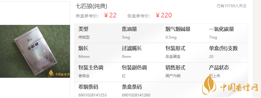 在七匹狼香烟价格表图中,七匹狼(纯典)5mg性价比还算高,这款七匹狼5mg价格是多少?据调查它的市价为22元/包。它采用国内最优质的烟叶原料,国际领先的降焦技术,精心调香卷制而成。口感突出果香蜜甜香糅合烟草本香的味道,对于喜低焦烟的烟客,它的杀瘾功能方面不错,甜润柔和拿捏也及为到位。强烈推荐给喜爱淡口味的烟客,绝对的优质良品。