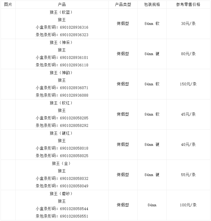 以上是小编整理的有关猴王香烟价格表和图片2021最新价一览的最新信息,相信在座的朋友们听到小编的介绍有所了解,但是小编在这里提醒一句还是以上内容整合于网络,更多最新最实用的资讯请持续关注jrs直播。