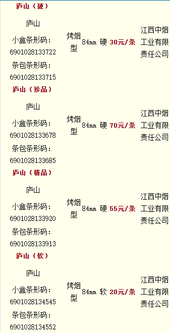 【庐山烟有几种什么价格 庐山烟价格表图片大全】相关推荐文章: