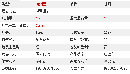 以上是小编整理的有关牡丹硬真红香烟价格表 牡丹硬真红多少钱的相关资料信息,希望能够对大家了解相关情况有所帮助,想获得更多消息资讯请关注jrs直播!