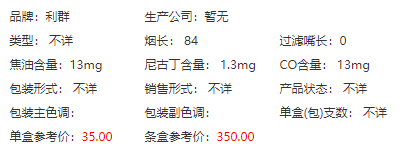 | 烟长:84mm | 过滤嘴长:30mm | 包装形式:条盒硬盒 | 单盒(包)支数:30 |