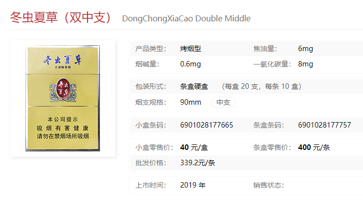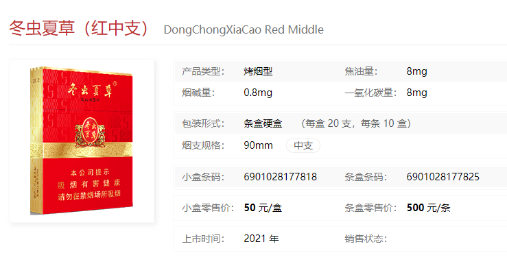 【冬虫夏草香烟中支什么价 2021冬虫夏草香烟中支图片及报价】相关推荐文章: