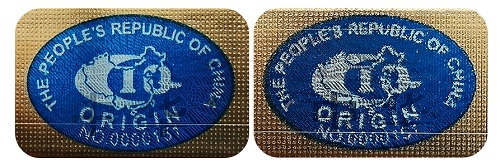 真品卷烟:原产地标识图案完整,线条均匀、清晰。