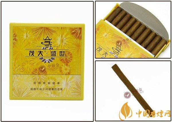 茂大盛世雪茄是迷你型小雪茄烟,也被称为茂大盛世迷你雪茄。烟身饱满,结构精良,短小精悍的茄身便于撑控,也便于携带,口感醇和飘香,令人特别喜欢。在50元以内茂大雪茄型香烟价格表图中,它很有代表性。每每谈起茂大雪茄型香烟有哪些好抽,就会很自然的想到它,它好抽,性价比还不错,值得品鉴。