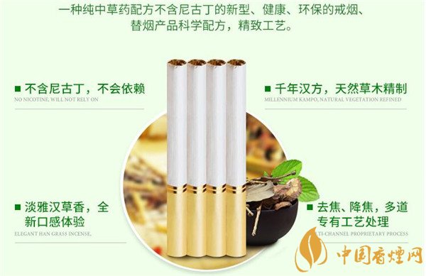 汉草清肺戒烟灵是纯中药安全健康烟,里面配有人参,丁香,艾叶,金银花,薄荷脑特提练而成仿烟型点燃产品,吸食者安全健康无副作用。