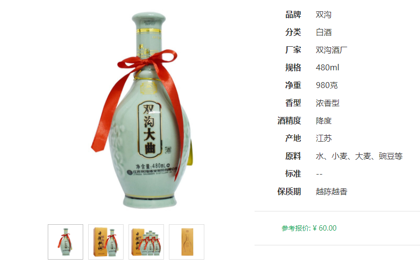 江苏省双沟酒大曲青瓷酒42°度浓香型白酒480ml*6瓶一整套装的京东官方价格是328元,一瓶装的官方零售价格大概60元。双沟大曲青瓷酒42度怎么样呢?接下来详细给大家介绍。