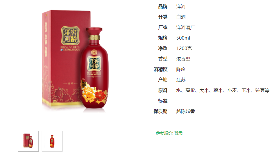 洋河窖龄30(叁零)42度口感绵柔浓香型白酒500ml一瓶的京东官方零售价格大概是暂无产品报价。洋河窖龄(叁零)42度怎么样呢?接下来详细给大家介绍。
