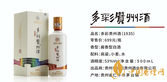 53度酱香型,多彩贵州酒(1935),产于世界酱香蒸馏白酒的核心产区——中国贵州茅台镇,以本地优质糯高粱、小麦、水为原料,利用得天独厚的自然微生物环境,遵循具有悠久历史的传统工艺精酿而成,以每年九月初九的重阳节投料开始,一年一个酿造周期,两次投料一次续沙,九次发酵,十次蒸煮,七次均衡取酒,并由大师级团队精选、勾调、品评,创新专利工艺让酱酒更柔更醇。酒体微黄,清亮透明,酱香明显,绵柔醇和,幽雅协调,尾净味长,空杯留香。国民酱香好酒,香飘大地神州。