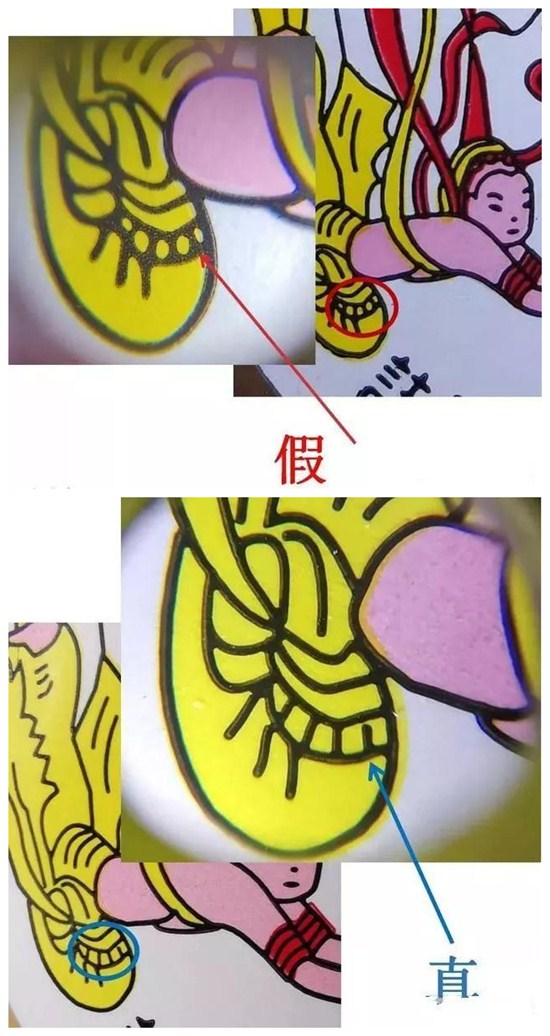 2、左边仙女的围裙边的网格的右边第二条线不与上边连接,有缺口,否则为假。