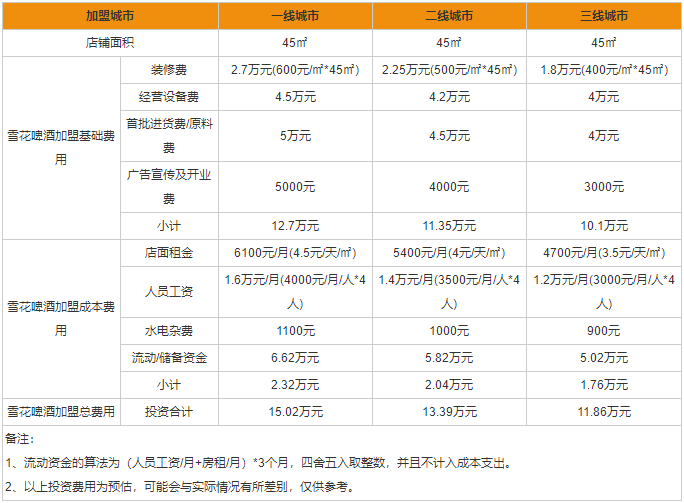 以上就是小编整理的雪花啤酒代理加盟费的多少,雪花啤酒代理价格表图的相关资讯,希望大家看完之后,对自身有一定帮助。更多资讯敬请关注jrs直播。小编温馨提示:投资需擦亮双眼,切勿盲目跟风。