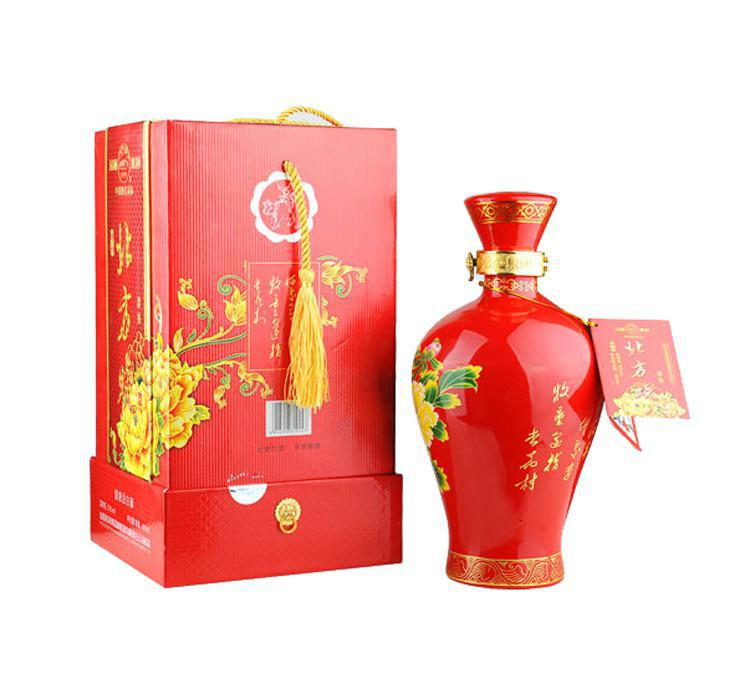 53°北方烧酒酱香突出、优雅细腻、入口清新、饮之爽口、酒体醇厚、回味悠长、不口干、不上头、不头痛、不易醉、空杯留香持久。掀盖酒香扑鼻,品之优雅细腻、入圣境、妙不可言,红色的瓶身设计大方而不落俗套,华丽丰茂的牡丹花布满于整个花瓶,更彰显出它雍容华贵,富丽堂皇之尊贵,仿佛回到唐朝,看见太平盛世,贵妃之柔情。