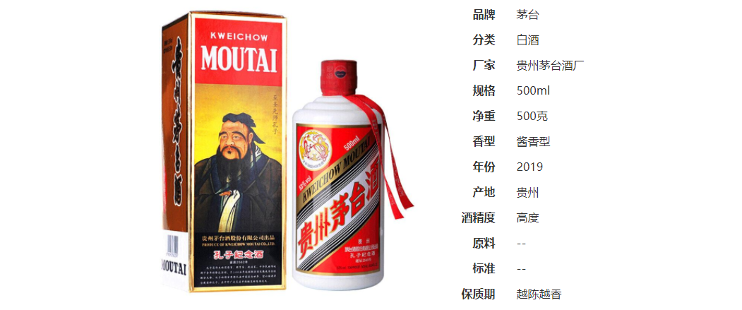 孔子的思想对中国和世界都有深远的影响,每年孔子诞辰(9月28日),世界各地都会进行纪念活动。为了纪念孔子,茅台集团也推出了“孔子诞辰纪念酒”,酒瓶背标以孔子肖像作为背景图,外包装彩盒也印有大幅孔子肖像,下方还记有孔子生平及事迹的文字。