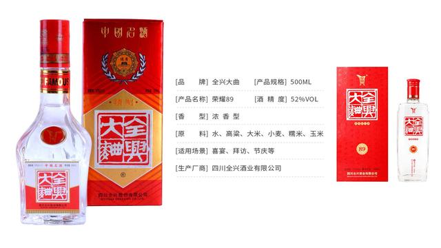 3.全兴大曲。(全兴大曲荣耀89版52度500ml,参考价格100元,推荐指数:)