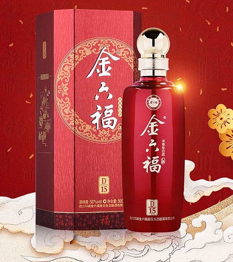 金六福.D15,精选好粮,精心慢酿,与五粮液酒同工艺、同原料,具有香气悠久、味醇厚、入口甘美、入喉爽静、酒体丰满谐调的独特风格。