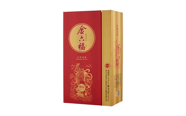 金六福设计新颖,其开盒时“开门见福”,取酒时“揭福”,酒瓶如古钱袋,寓意吉祥,处处让人心情开朗。