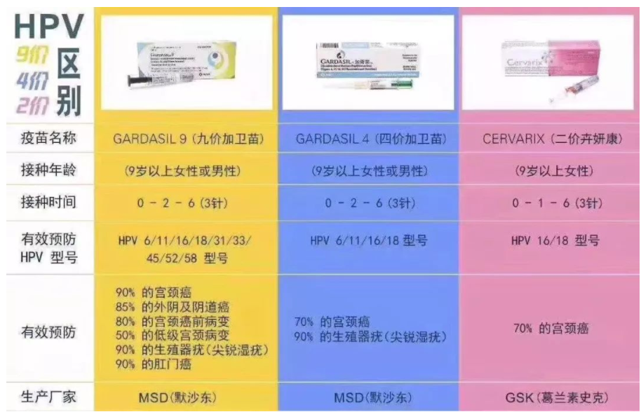这就厉害了,能够预防HPV6、11、16、18、31、33、45、52、58九种亚型的感染。掰着手指算算,基本上能预防90%以上的宫颈癌。