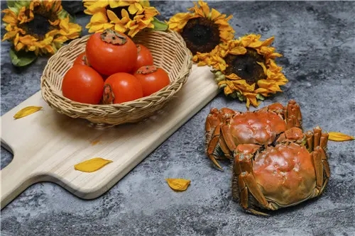 每500克螃蟹中蛋白质的含量约为49.6克、脂肪9.3克、糖类27.2克,除此外还有丰富的磷、铁、维生素等成分,而柿子中含有部分的鞣酸,同时吃的话,少量吃是没有特别大的异常的,但是食用过多的话,鞣酸会与蛋白质发生化学反应,蛋白质变性生成沉淀,不仅会影响蛋白只吸收,还可能会产生腹泻、腹痛等胃肠道反应。